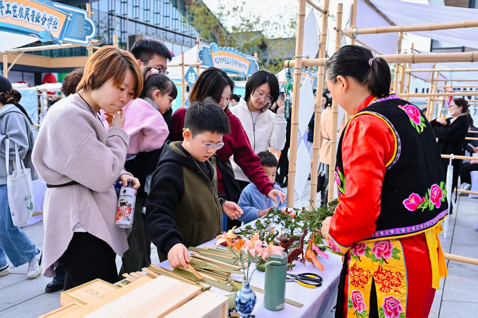 活动现场设立了“非凡匠趣·非遗生活街区”,打造集展示、展销与互动体验于一体的残疾人非遗文创市集,集中展示了来自全省20余家“天府助残·美丽工坊”项目的非遗文创成果,涵盖蜀绣、竹编、羌绣、藤编、刺绣、手工艺品等多个门类。残疾人工匠们现场演示技艺、讲解创作,生动展现了四川残疾人在非遗传承与创新中的卓越才华与自强精神。